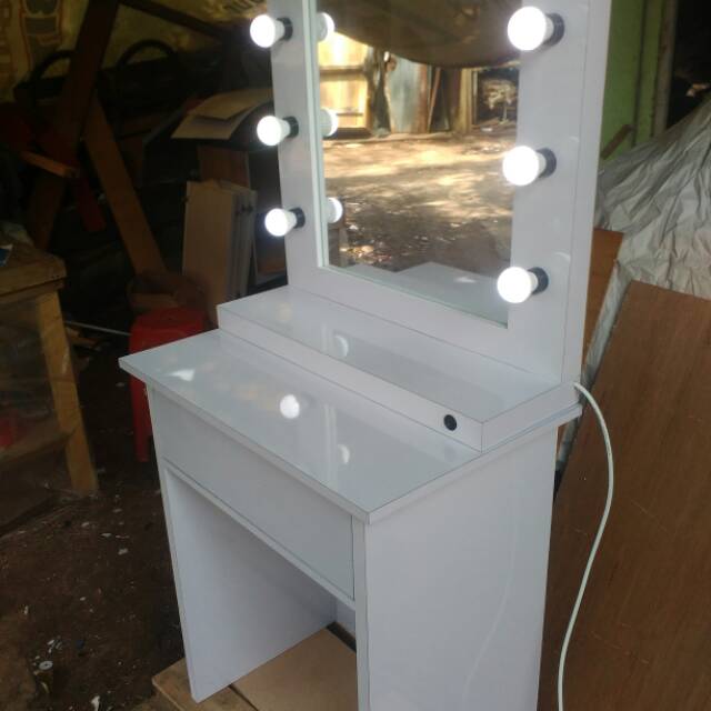 Meja rias lampu minimalis ini sangat kami rekomendaikan buat anda yang sedang mencari meja rias model lampu karena meja rias yang kami produksi memakai bahan baku yang berkualitas, mulai dari kayu jati tpk sebagai bahan baku utama sampai dengan kaca yang menggunakan jenis tempered, jadi anda tidak perlu meragukan kualitas produk kami, cara pemesanan punsangat mudah langsung hubungi kami lewat. Meja rias lampu led merupakan produk meja rias modern yang sangat populer dan ngetrend sekarang ini. Spesifikasi meja rias minimalis lampu dengan kaca full kesukaan artis. Bola lampu led menyediakan pencahayaan profesional untuk riasan, lembut dan tidak mempesona, sehingga mata anda tidak terluka oleh cahaya, cahaya yang cukup membuat anda. Cari model meja rias terbaik dengan harga meja rias lebih.